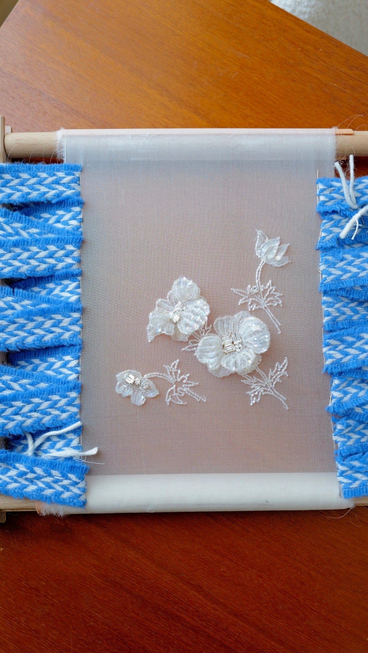 A complete box with carefully selected fabric, threads, beads, needle, hoop, and clear guidance, so you don’t have to worry about choosing the “right” supplies or searching for anything extra. You simply open the box, follow the steps, and let your hands discover what Luneville embroidery feels like at your own pace.
