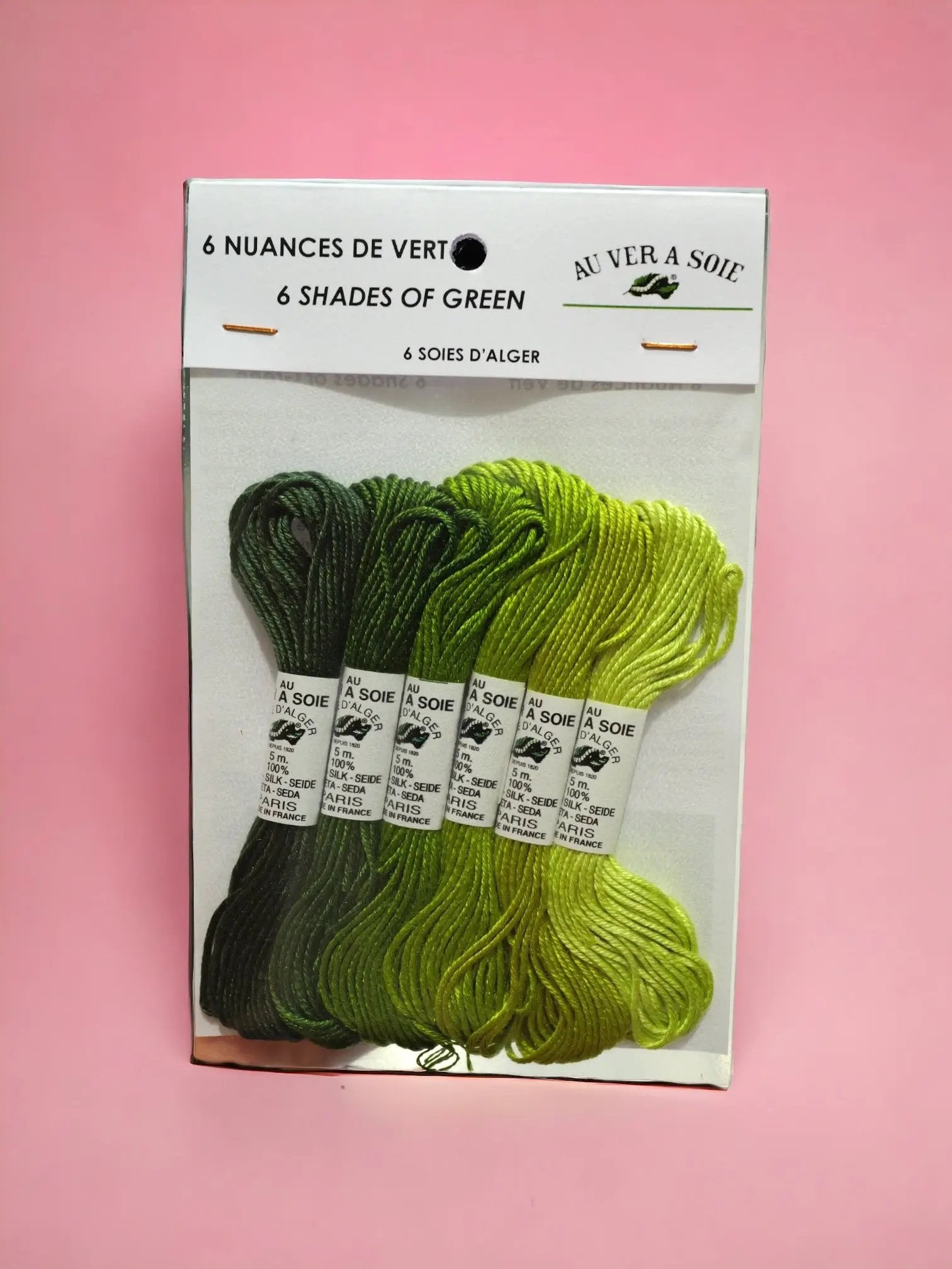 There are 7 strands of silk threads in 6 different shades, each strand measuring 5 meters (or 5.46 yards).